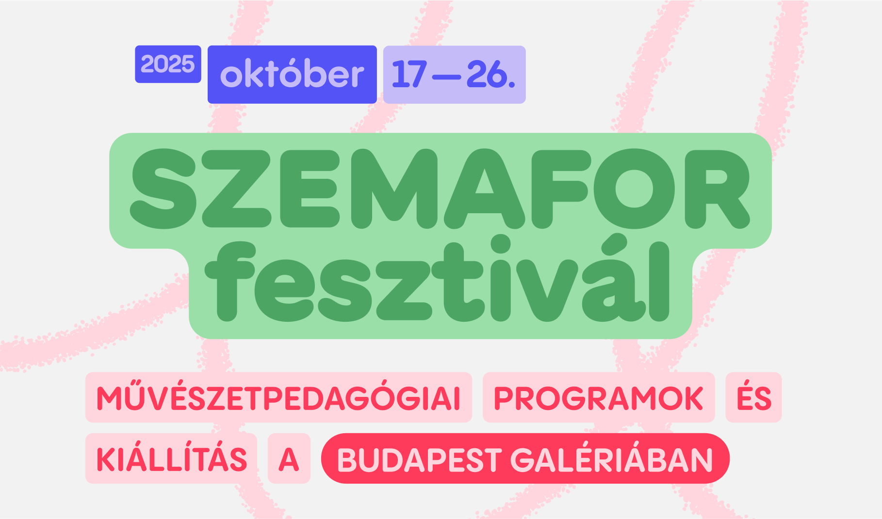 A SZEMAFOR Stúdió idén ünnepli 20. évfordulóját. Ebből az alkalomból a galéria egy tíznapos fesztivált és kiállítást szervez, amelyen az elmúlt húsz év SZEMAFOR (Szemlélet Alkotás Forma) foglalkozásain feldolgozott műalkotásokból válogat, valamint a programokon készült gyerekmunkákat lehet megismerni. A Budapest Galéria alsó szintjén Bagi Attila, Körösényi Tamás, Szabó Ádám, Szíj Kamilla és Tranker Kata csoportos kiállítását, az emeleti terekben pedig a stúdió történetét tekinthetik meg a látogatók. A fesztivál ideje alatt művészetpedagógiai foglalkozásokat, szakmai prezentációkat és beszélgetéseket szervezünk, melyek témái a művészeti edukáció és a kortárs képzőművészet közvetítése.